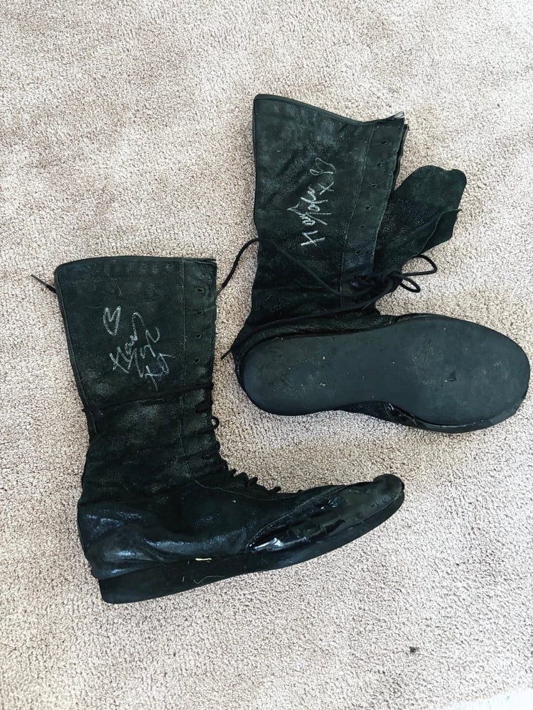 Signed ring worn wrestling boots.